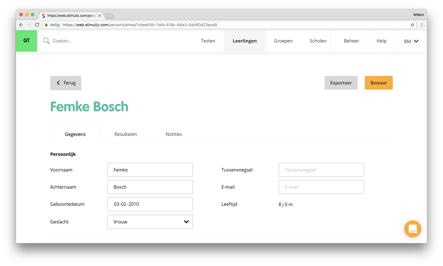 In Stimuliz worden inzichten samengebracht in dossiers. Een dossier van een leerling bevat de onderdelen Gegevens, Resultaten en Notities.