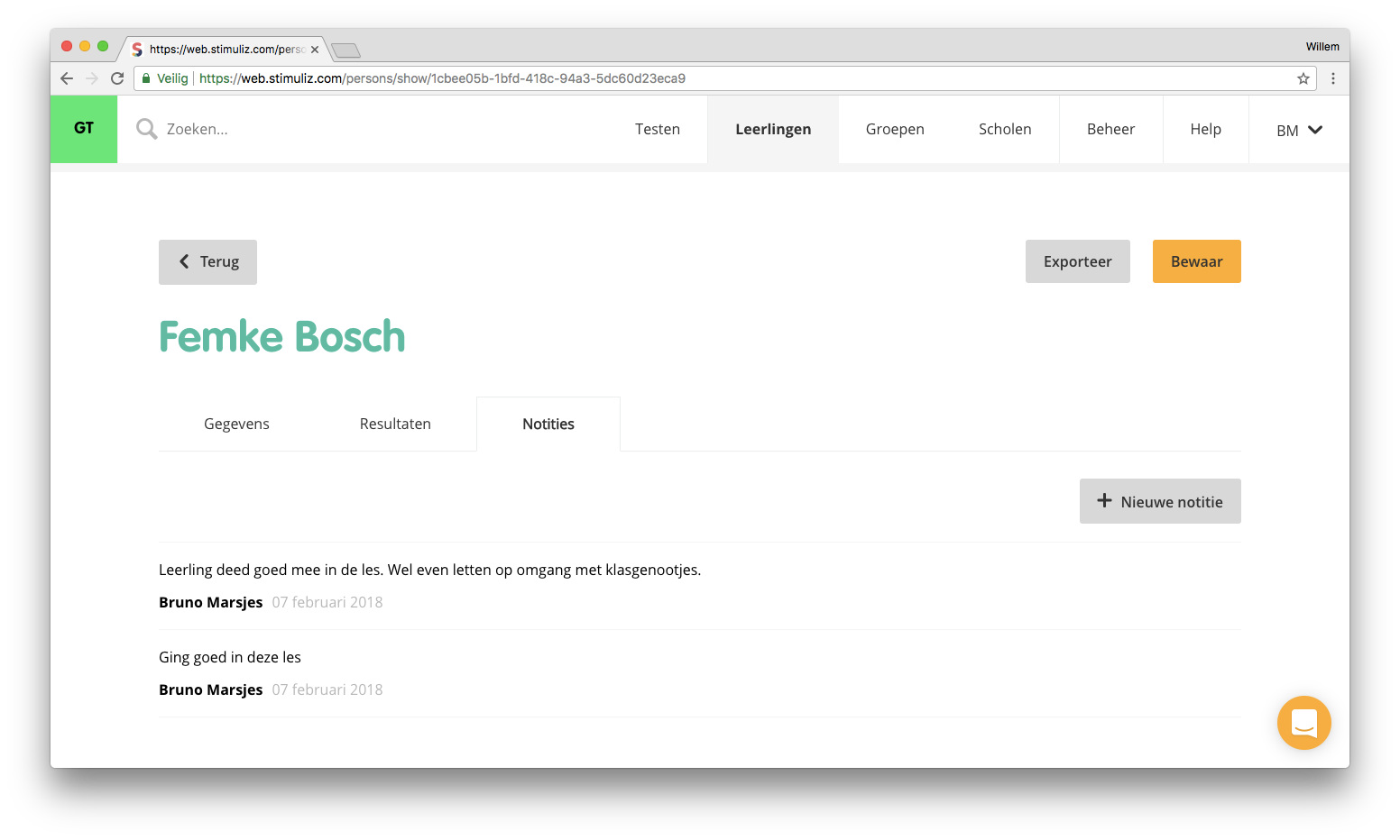 In dit overzicht zie je notities die voor deze leerling zijn gemaakt.