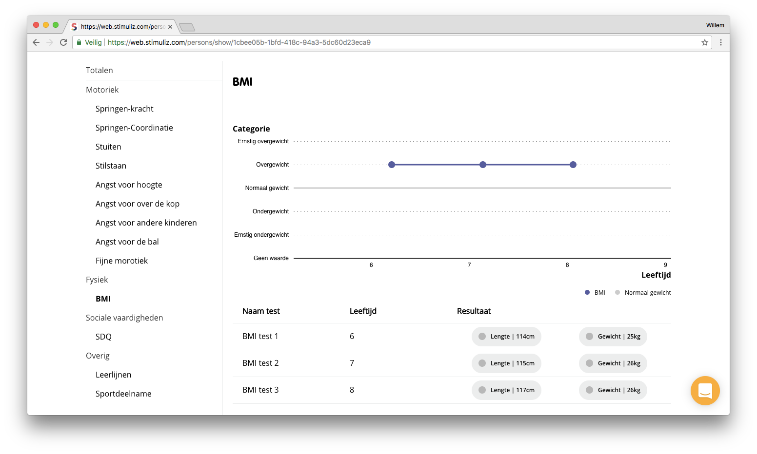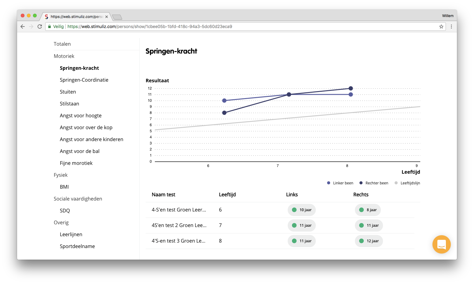 In dit overzicht bekijk je de resultaten van alle testen die voor deze leerling zijn uitgevoerd. Klik in een tabel van testresultaten op een resultaat om de betreffende test te openen waar deze waarden uit zijn voortgekomen.